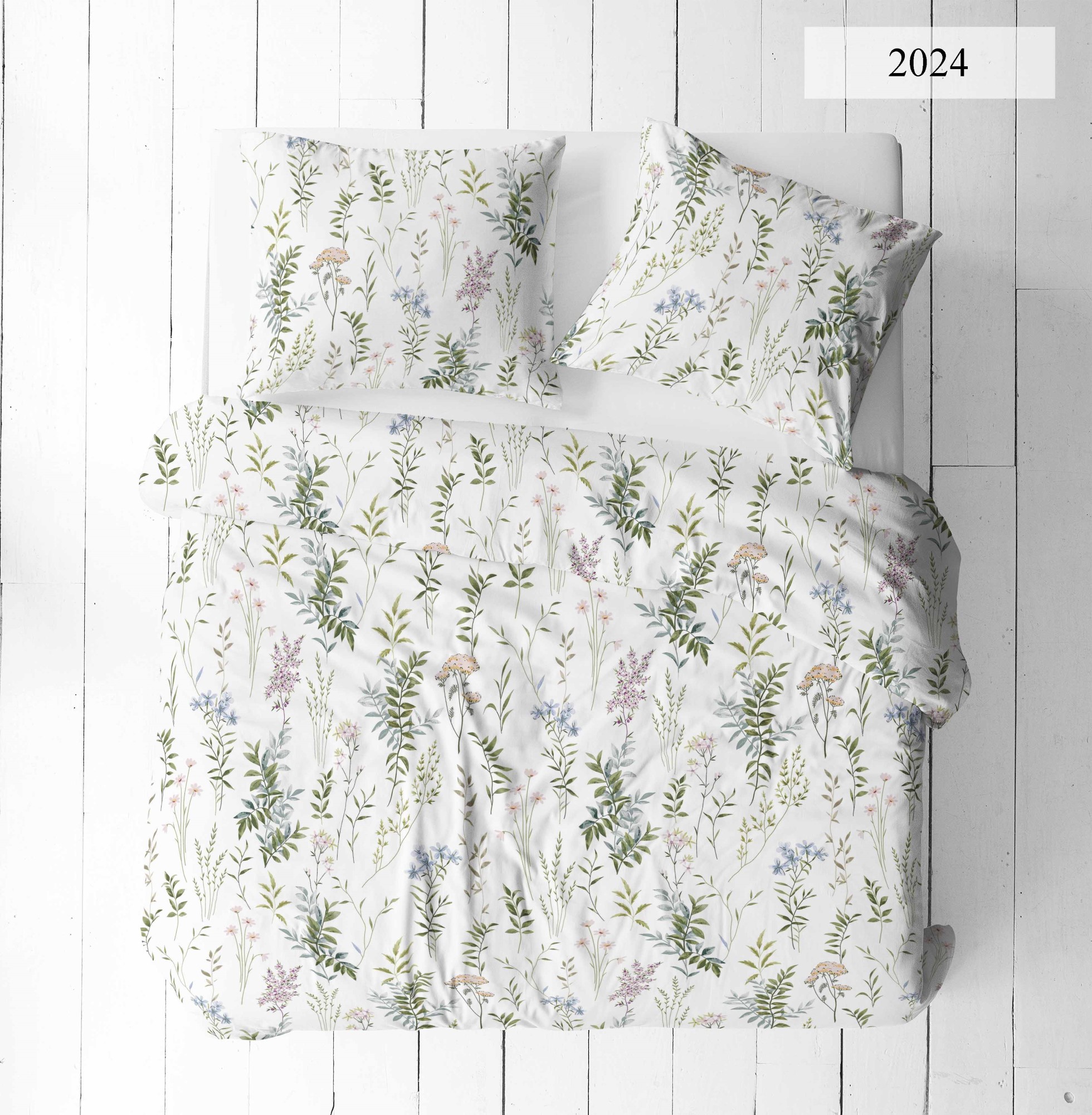 Bawełna gałązki i polne kwiaty na bieli 2024125g/m2 szerokość 1,6m
