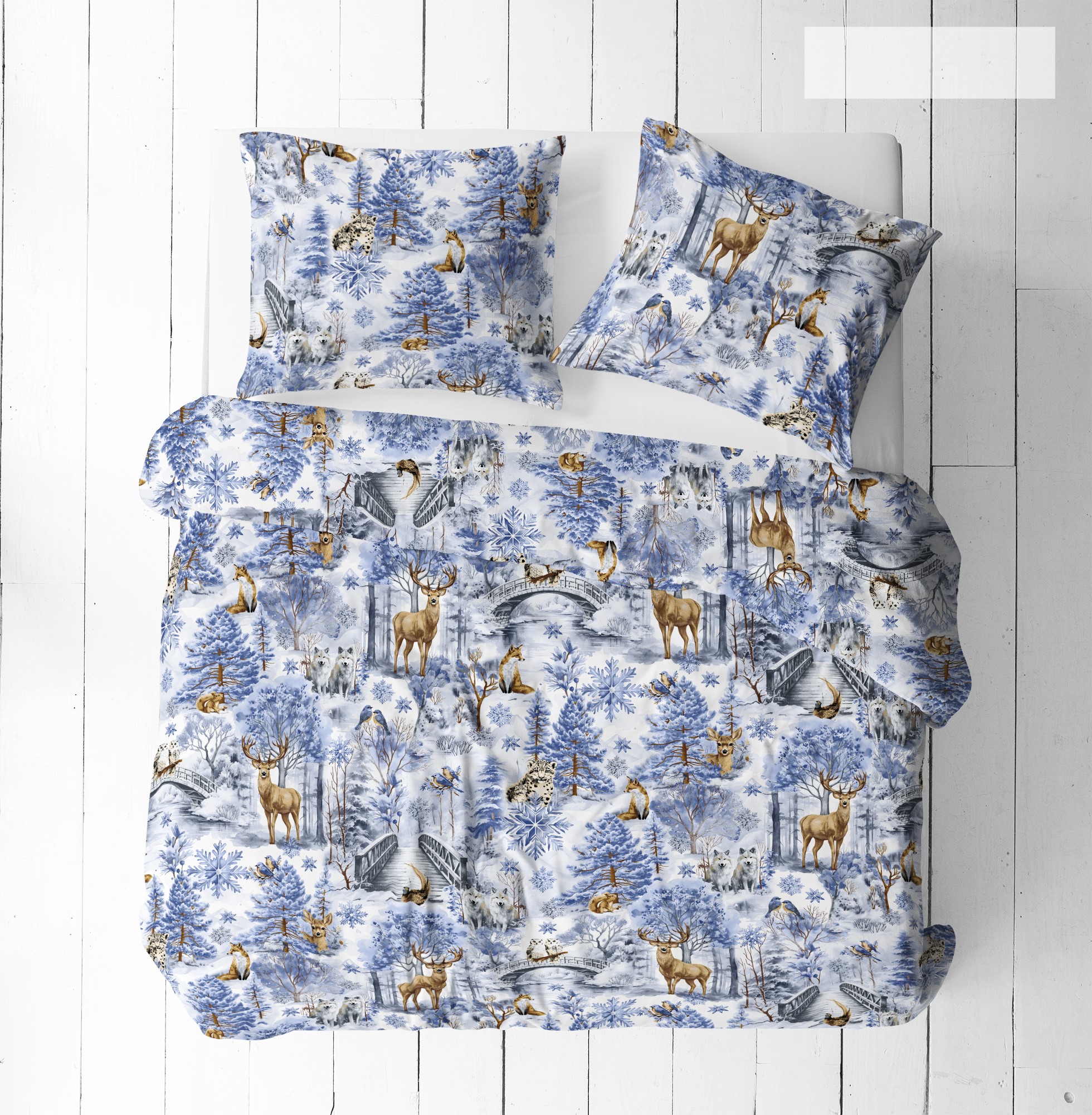 Bawełna zimowy las niebieski 125g/m2 szerokość 1,6m