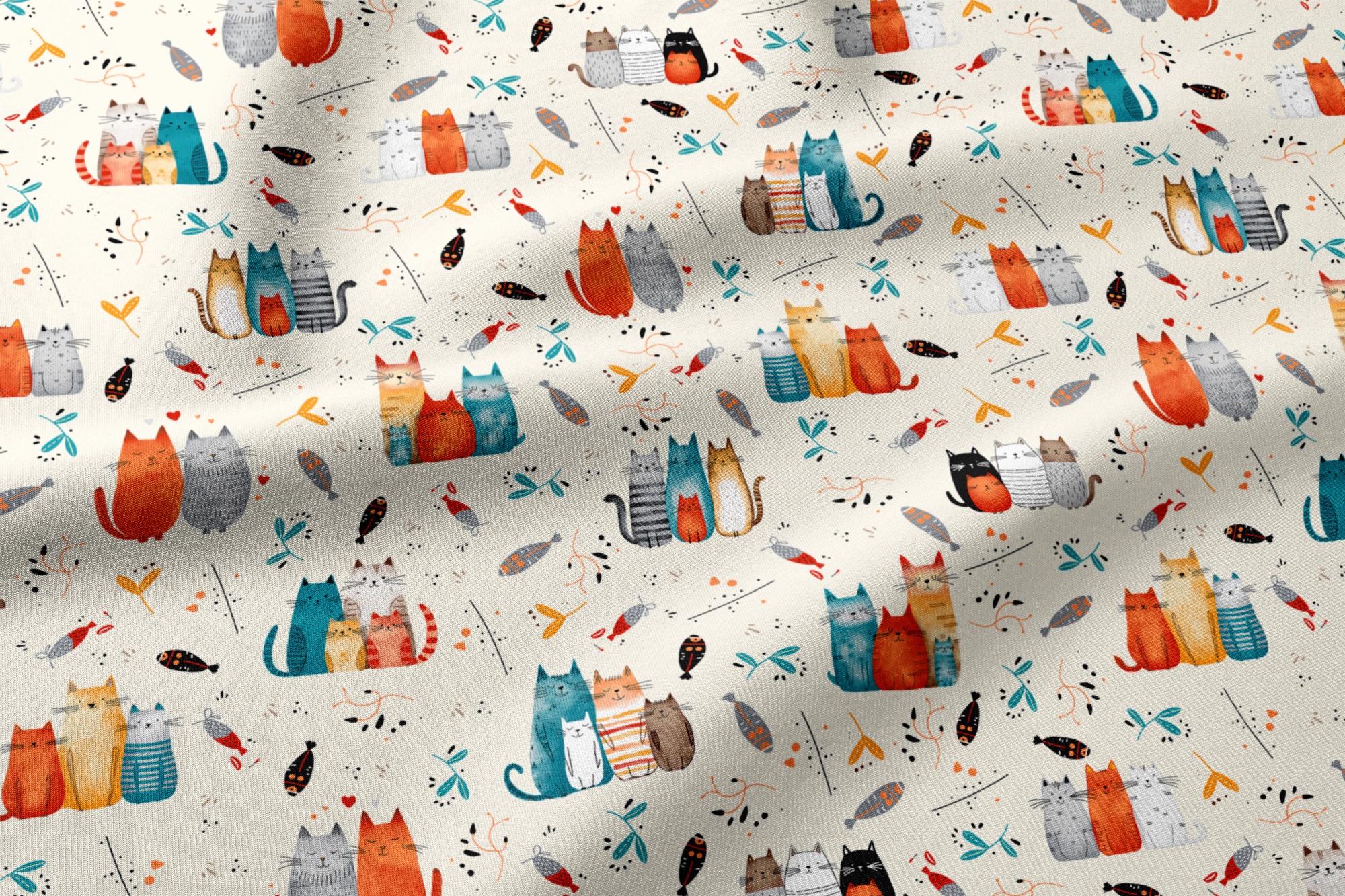 Bawełna rodziny kotków 125g/m2 szerokość 1,6m