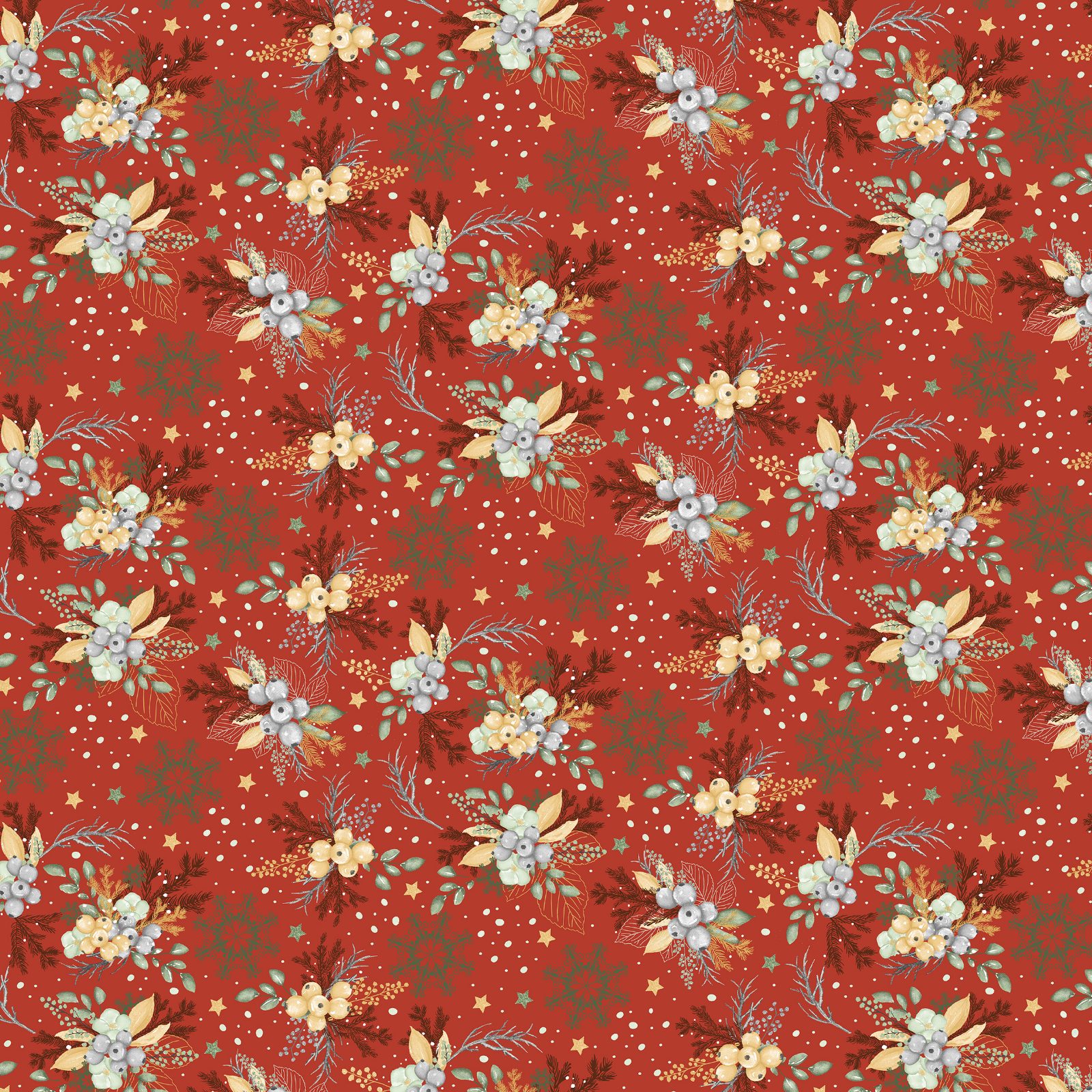 Bawełna świąteczne stroiki na czerwieni 125g/m2 szerokość 1,6m