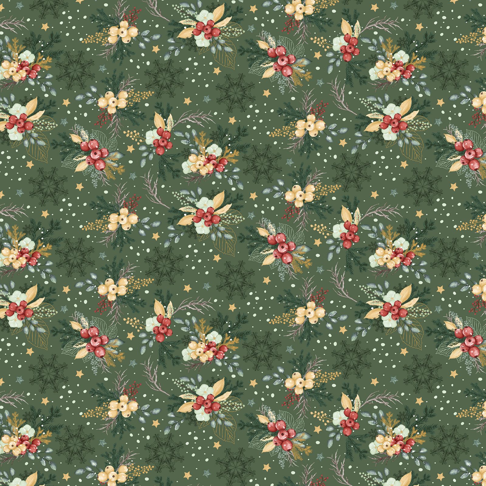 Bawełna świąteczne stroiki na zielonym 125g/m2 szerokość 1,6m